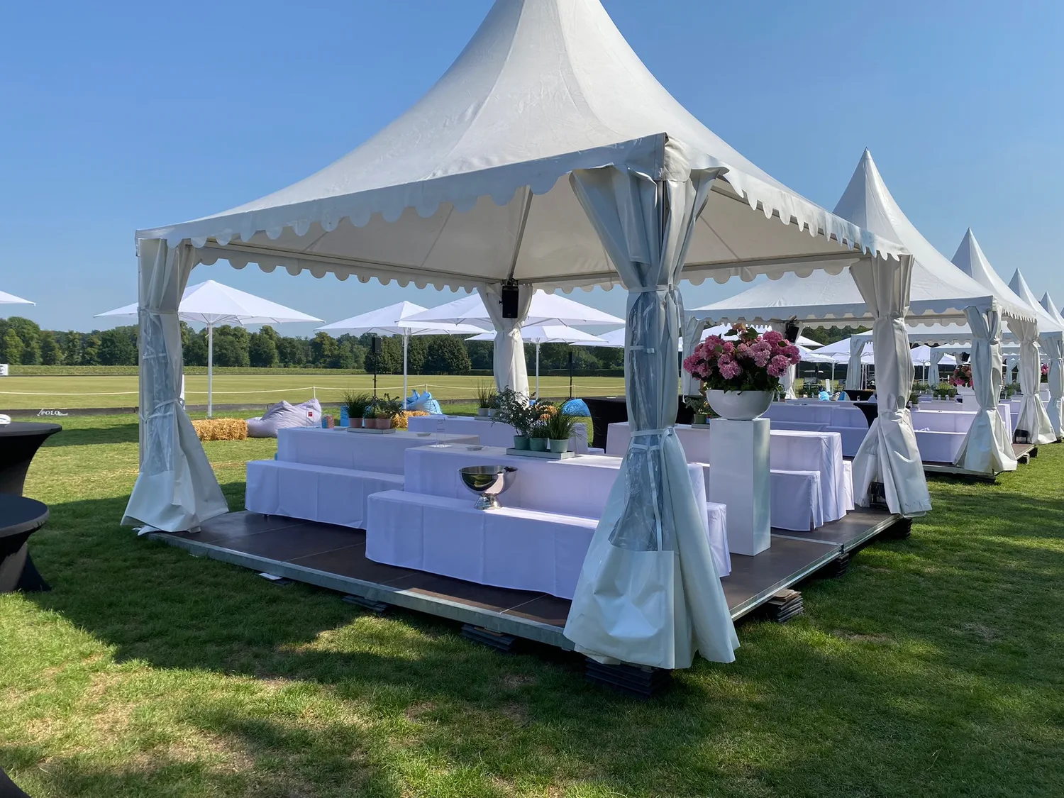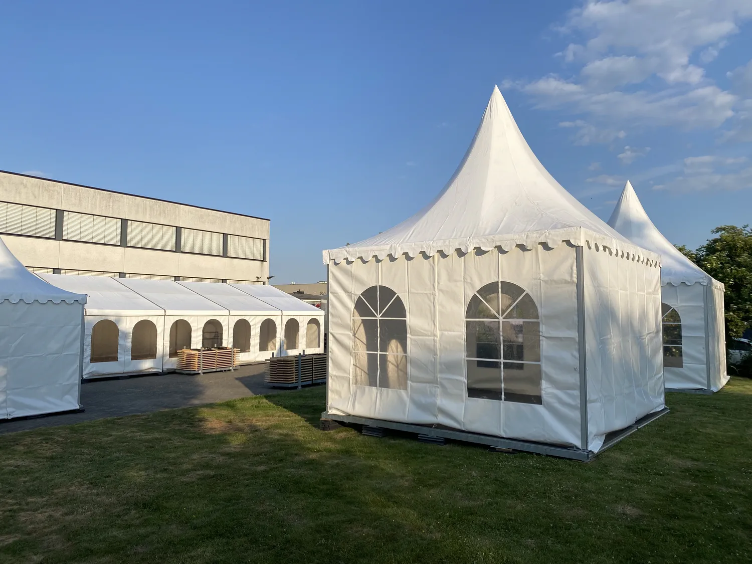 Entdecken Sie neben unseren Satteldach- und Pagodenzelten ein umfangreiches Sortiment an weiteren Zelttypen und Zubehör. Unser Service beinhaltet eine individuelle Beratung, Planung und Umsetzung Ihrer Veranstaltung in Münster und darüber hinaus. Von der Ausstattung bis zum Aufbau sorgen wir für einen reibungslosen Ablauf. Verlassen Sie sich auf uns für alles, was Sie für ein erfolgreiches Event benötigen. Wir legen höchsten Wert auf Qualität, Zuverlässigkeit und Kundenzufriedenheit. Ihr Event liegt uns am Herzen, und wir stehen Ihnen mit unserem Fachwissen und Engagement zur Seite, um sicherzustellen, dass es ein voller Erfolg wird. Unsere langjährige Erfahrung und unsere Leidenschaft für erstklassigen Service machen uns zum idealen Partner für die Realisierung Ihrer Veranstaltungsträume.