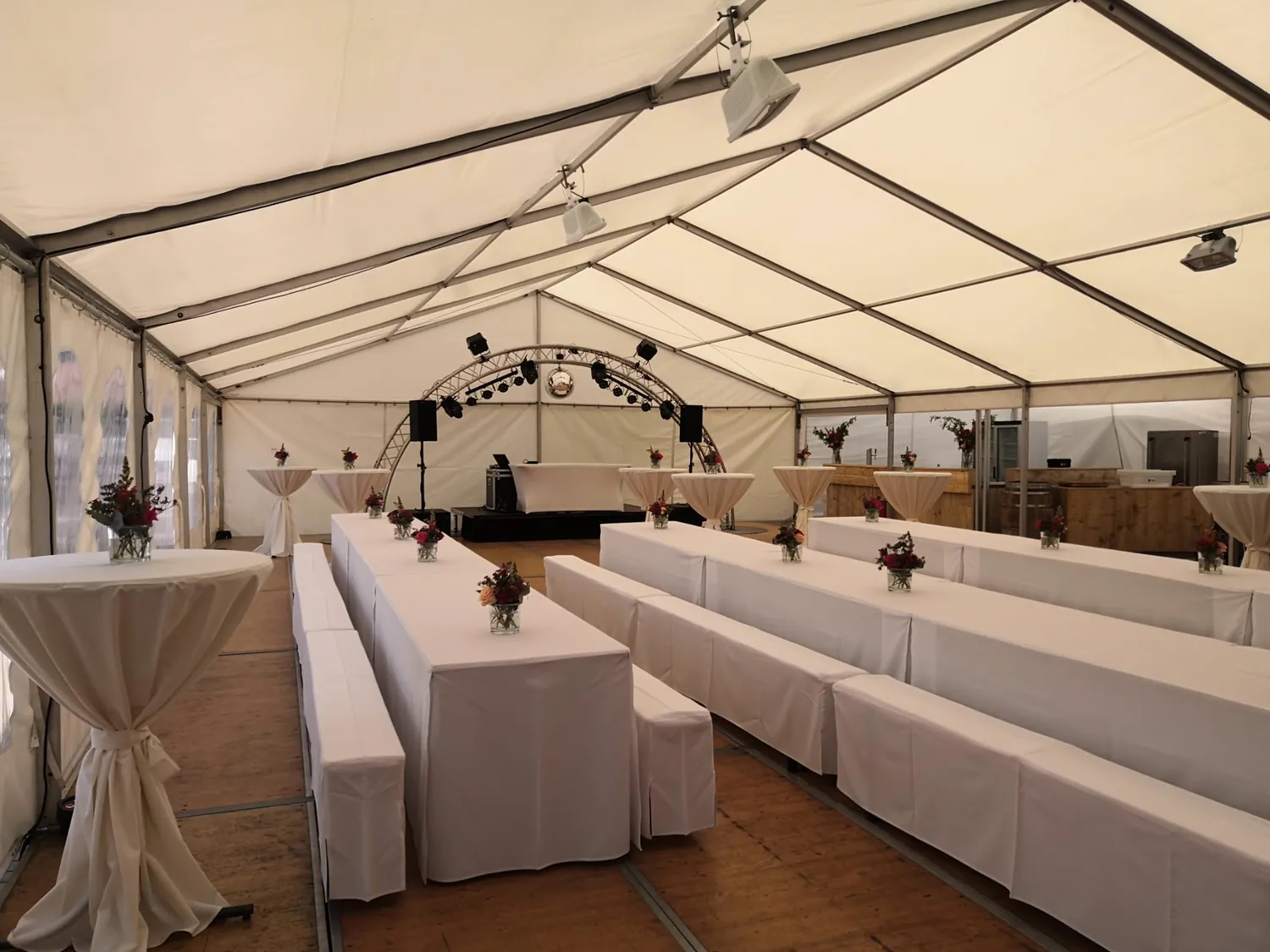 Entdecken Sie unser breites Sortiment an Zelten und Event-Zubehör, das für jede Art von Veranstaltung geeignet ist. Mit unserer langjährigen Erfahrung sorgen wir dafür, dass Ihr Event reibungslos abläuft und in bester Erinnerung bleibt. Machen Sie Ihre Feier zu etwas Besonderem und verleihen Sie ihr den perfekten Rahmen mit unserem hochwertigen Zeltverleih-Service. Unser Sortiment umfasst nicht nur vielfältige Zeltvarianten in verschiedenen Größen und Stilen, sondern auch ein umfangreiches Zubehörsortiment, um Ihr Event unvergesslich zu gestalten.